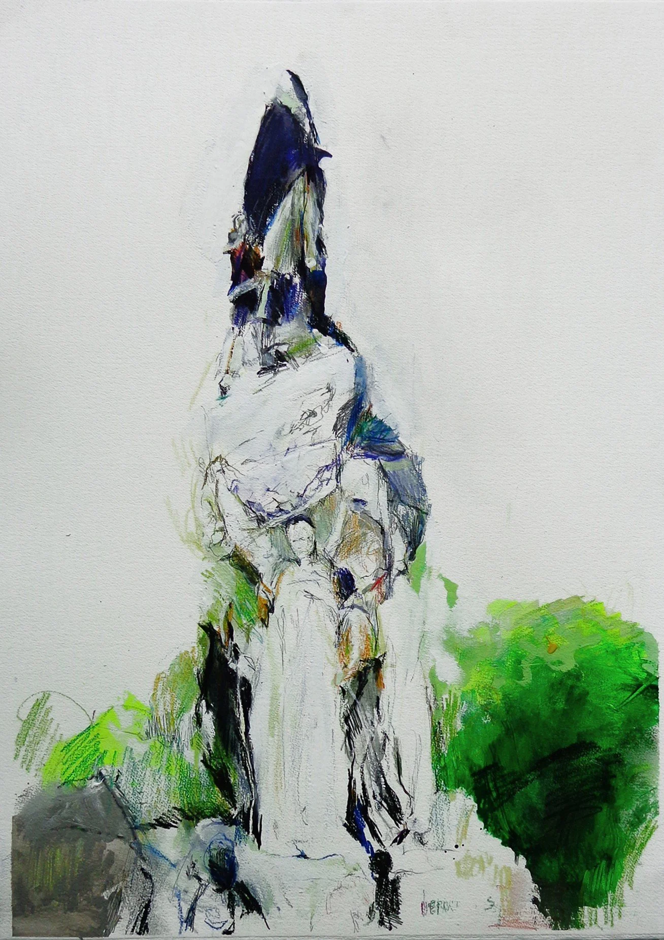 Paris Monument with cloaked figure on top, 23" x 30", gouache and pencil on paper, 2023