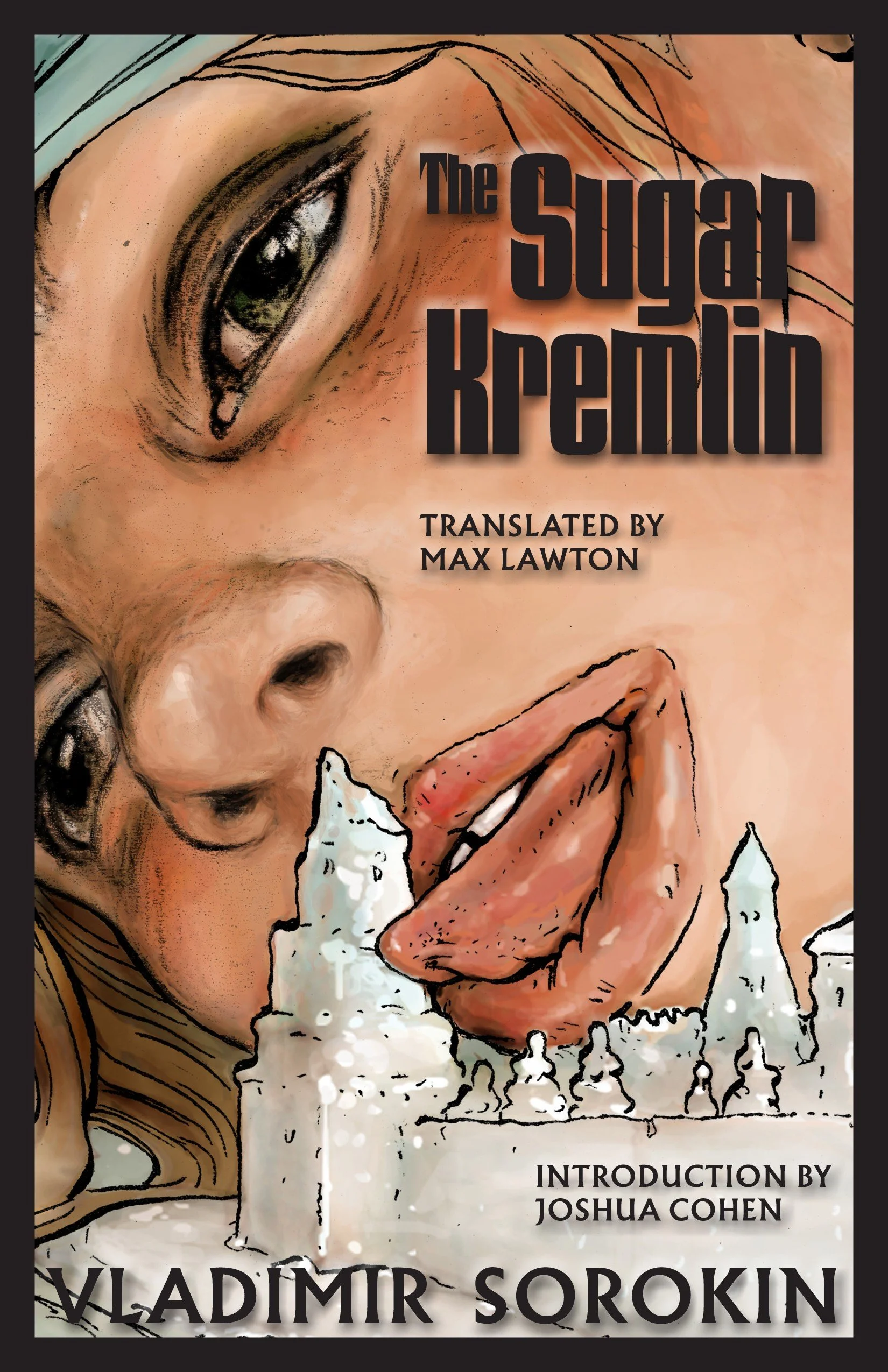 The Sugar Kremlin presents another fine entry in the catalogue of Sorokin’s works available in English. Although The Sugar Kremlin is a sequel in a loose sense, it is not a bad entry point for readers new to Sorokin, and Joshua Cohen’s interview with the author (included as the introduction with the title “The Guts of the Russian Brontosaurus-Cow”) is especially illuminating. No other Sorokin translation to date has included such an interview, which, true to Sorokin’s artistry, explains his methods and conception of Russian history but leaves to the reader the endeavor of interpretation. Max Lawton as translator is, for better and worse, the only currently active English translator for Sorokin (Sally Laird and Jamey Gambrell, Sorokin’s first English translators, having died in 2010 and 2020, respectively). Lawton knows Sorokin personally (regularly corresponding with and visiting the author, whom he refers to rather familiarly as Vladimir), which surely helps ensure that as much of Sorokin’s intention comes through as possible. In many respects, Lawton makes good (or, in the contentious area of translation, at least defensible) choices in opting for an English version that approximates the effects of the Russian original rather than a strict adherence to literal translation (which, Lawton reasonably argues in interviews and in remarks in other volumes, can miss the point of Sorokin’s games with language). Lawton does, however, have trouble with prepositions (in English), namely the irksome tic of employing the grammatically offensive “off of” where the simpler and less aurally abrasive “off” is correct, as well as a tendency to change between past and present tenses multiple times in a story. (Such issues are not apparent in the Laird and Gambrell translations, suggesting translator shortcomings rather than authorial choice.) Nonetheless, The Sugar Kremlin is a rewarding read, a worthwhile addition to a personal collection of Sorokin, and another fine example of the author’s style of recreating (and not, as he emphasizes, describing) the world through a kind of mixing of styles and perspectives in a technique he calls “faceted vision, like what insects have.”