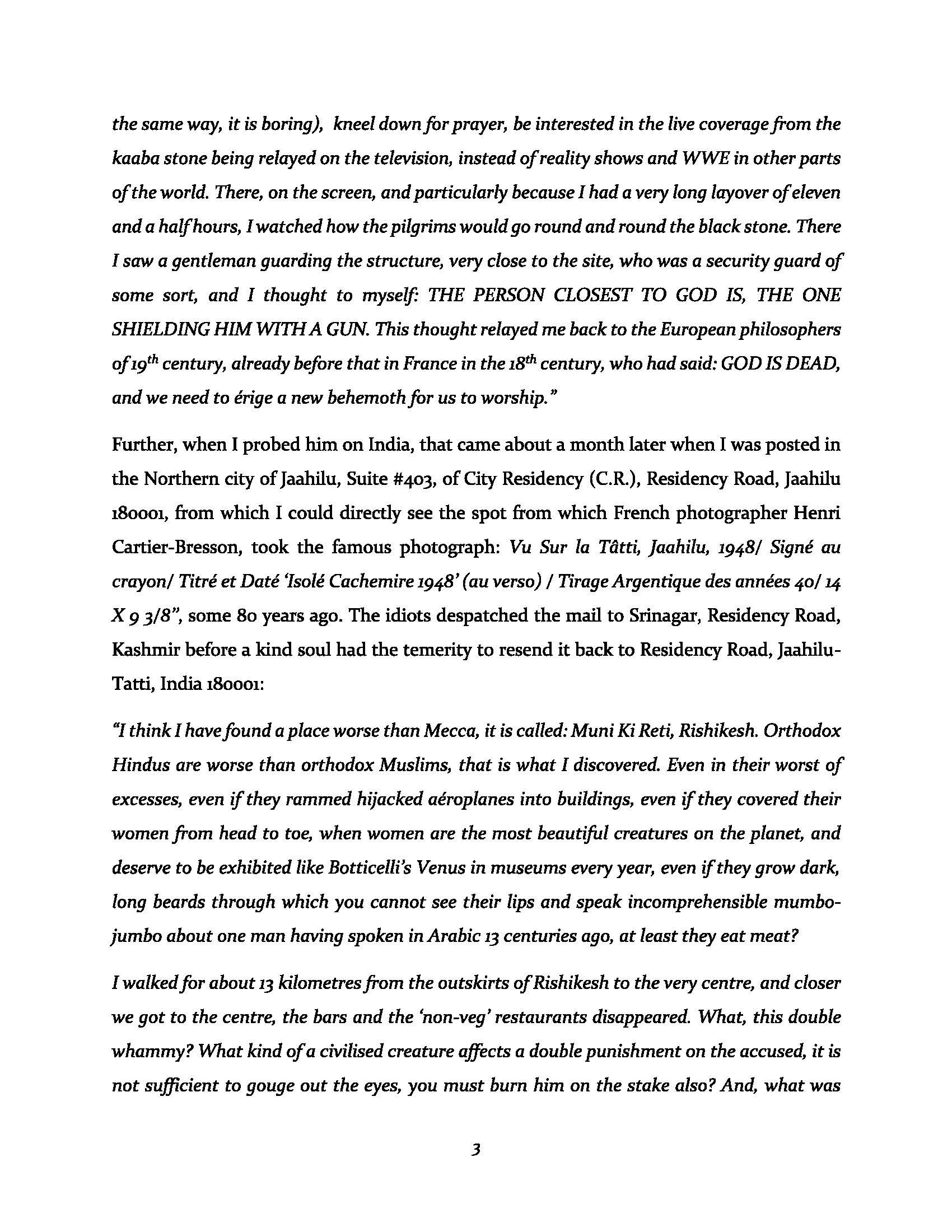 BIO: Arjun Razdan's work has been noted for its metafictional and poioumenic elements, however he simply considers it is Gobatoso ('Going Back to the Source,') literature. In effect, his work has been affected by the work of the earliest novelists such as Cervantes in the Spanish Picaresque tradition and also by Roman fragments. He is of Kashmiri heritage, and French heart.