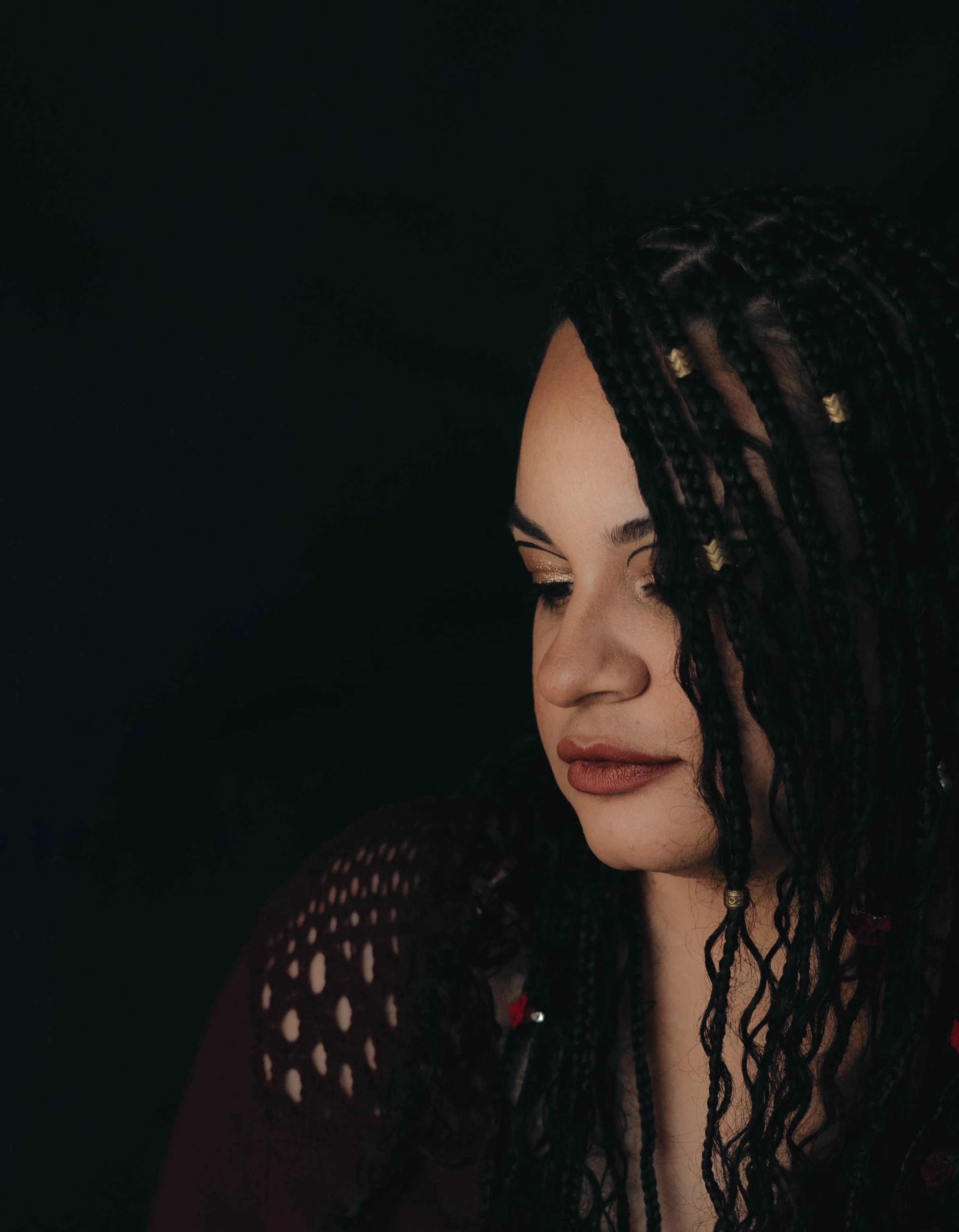 Darkness lifts from my form. Solidity sleeves down my arm, cloaks my body, hoods me in curls, chisels in divots and masks me in skin.